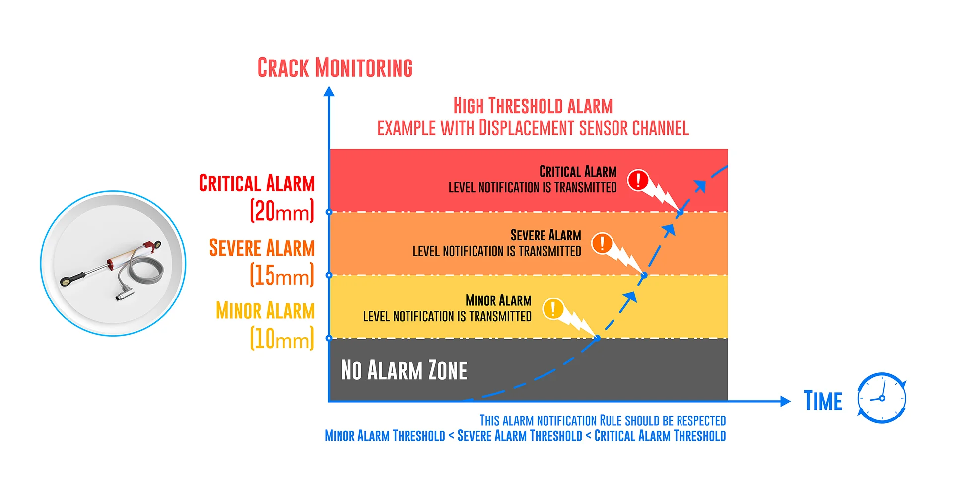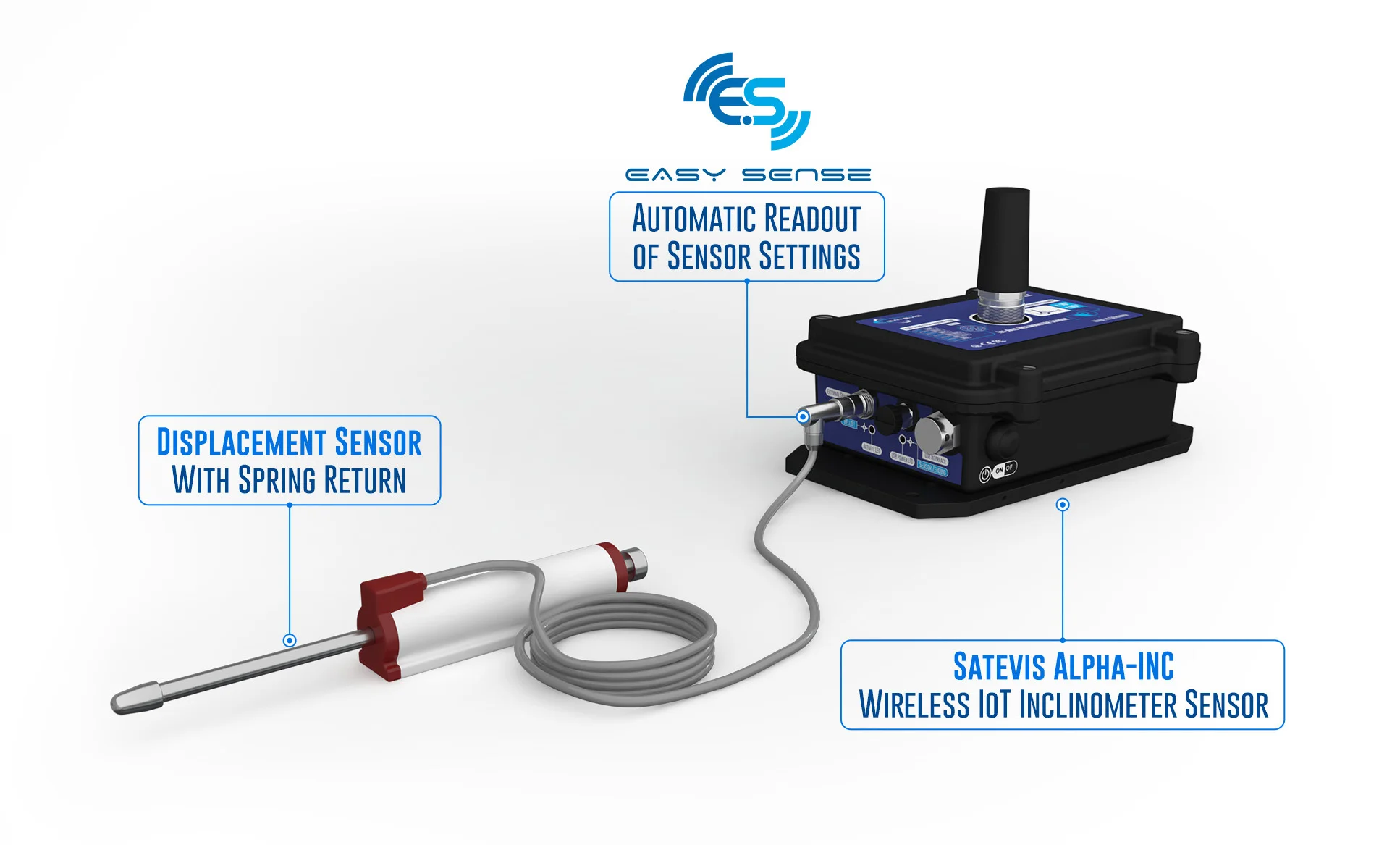 Users can keep the displacement sensor on-site and easily swap the Satevis® Alpha-Inc in case of sensor redeployment. There’s no need to adjust the displacement sensor settings, such as alarm thresholds or zero-offset values.