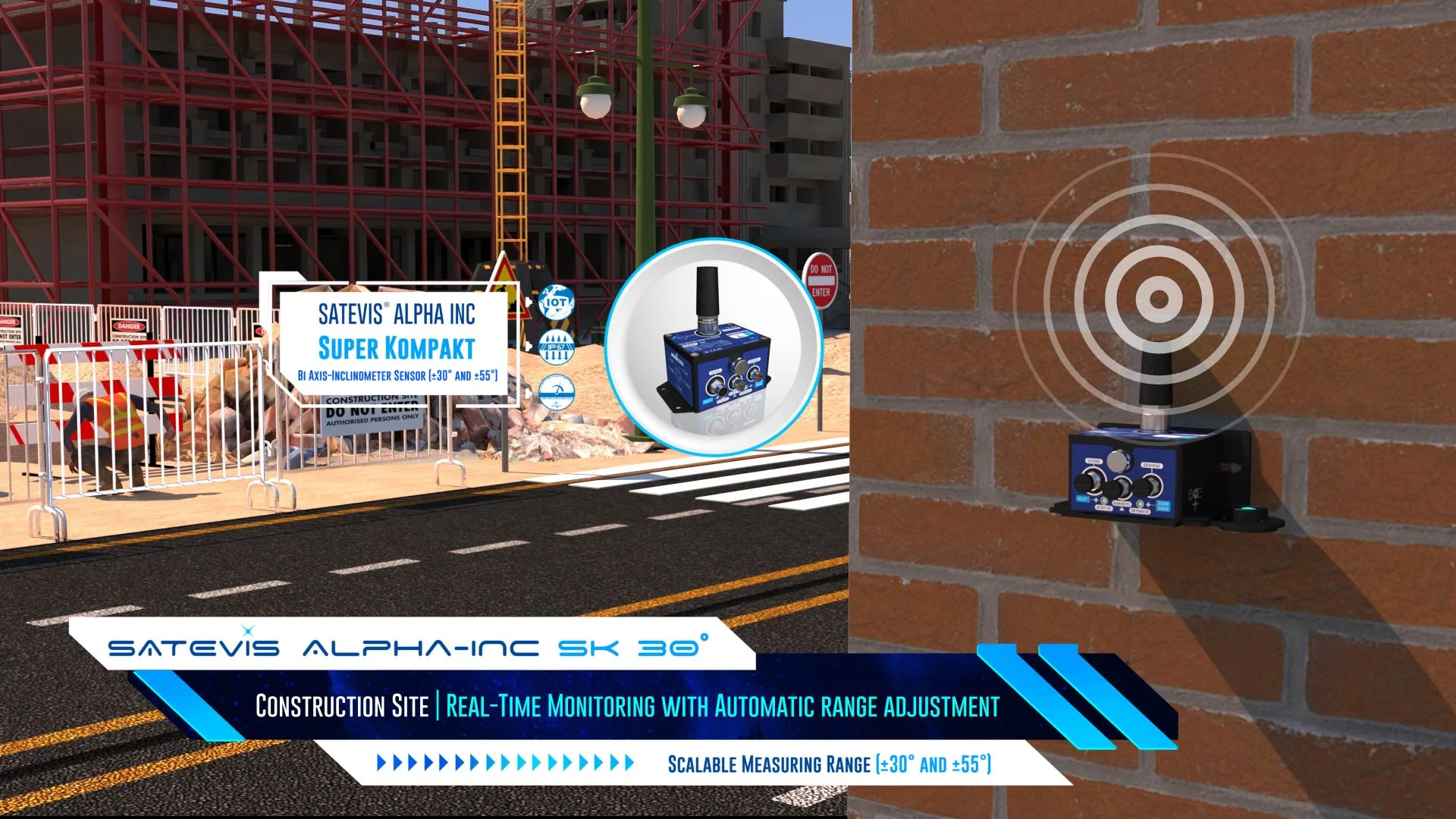 Satevis® Alpha Inc SK 30B (SK: Super Kompakt) is a high-precision wireless bi-axis inclinometer sensor (scalable range ±30° / ±55°) that integrates the open-standard LoRaWAN® protocol, making it ideal for Structural Health Monitoring (SHM), geotechnical applications, land surveying, and smart infrastructure projects. Designed for scalability and future-proofing, this evolutive device supports sensor fusion (Easy-Sense function), allowing seamless integration with external environmental sensors for expanded functionality. The Satevis® Alpha Inc SK 30B offers easy integration with third-party cloud platforms (TTN, Chirpstack, Datacake…) or CommonSense®, our proprietary cloud software, ensuring flexible deployment and real-time data insights. With its robust performance and adaptability, the Satevis® Alpha Inc SK 30B is the smart choice for precision monitoring in critical infrastructure applications. |