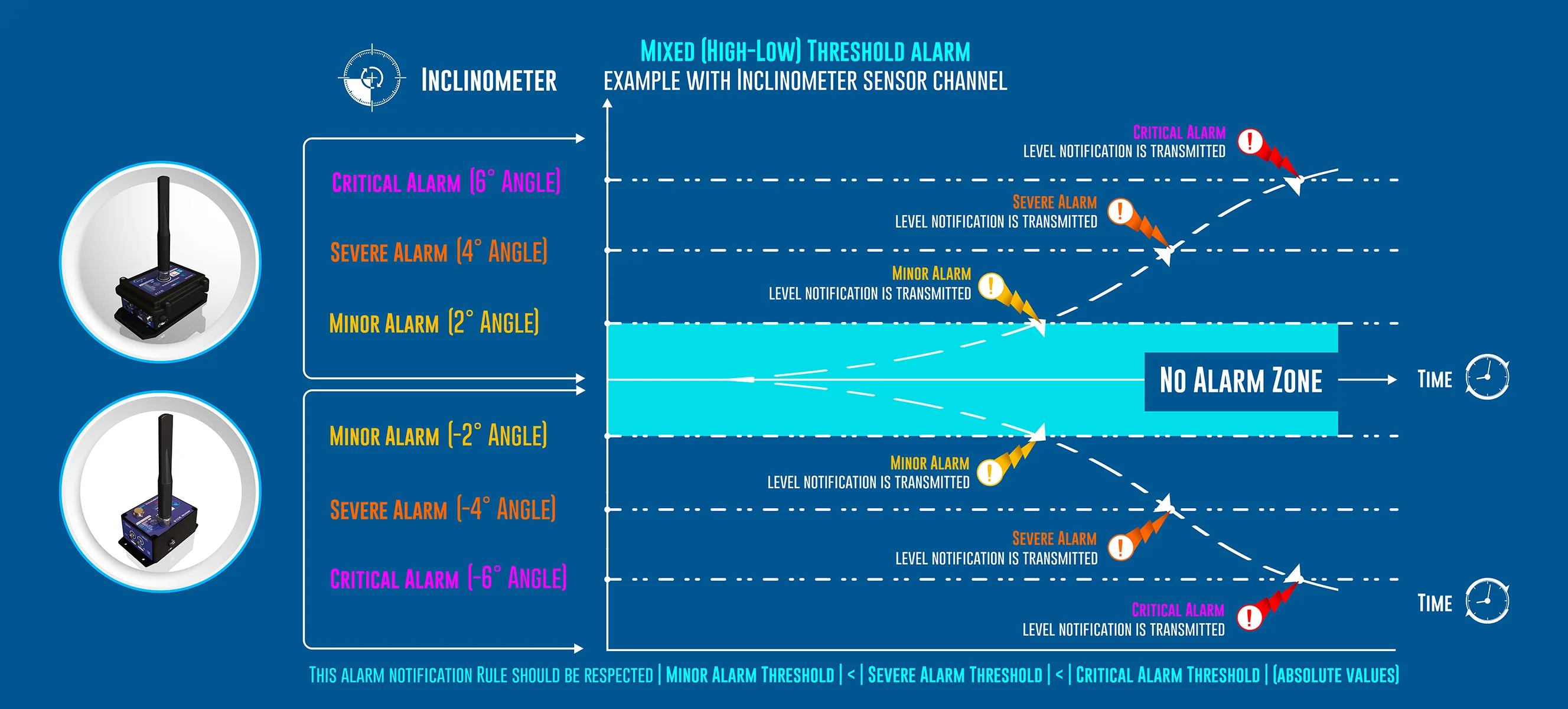 • Alarm threshold values (three levels: Critical, Severe, Minor)