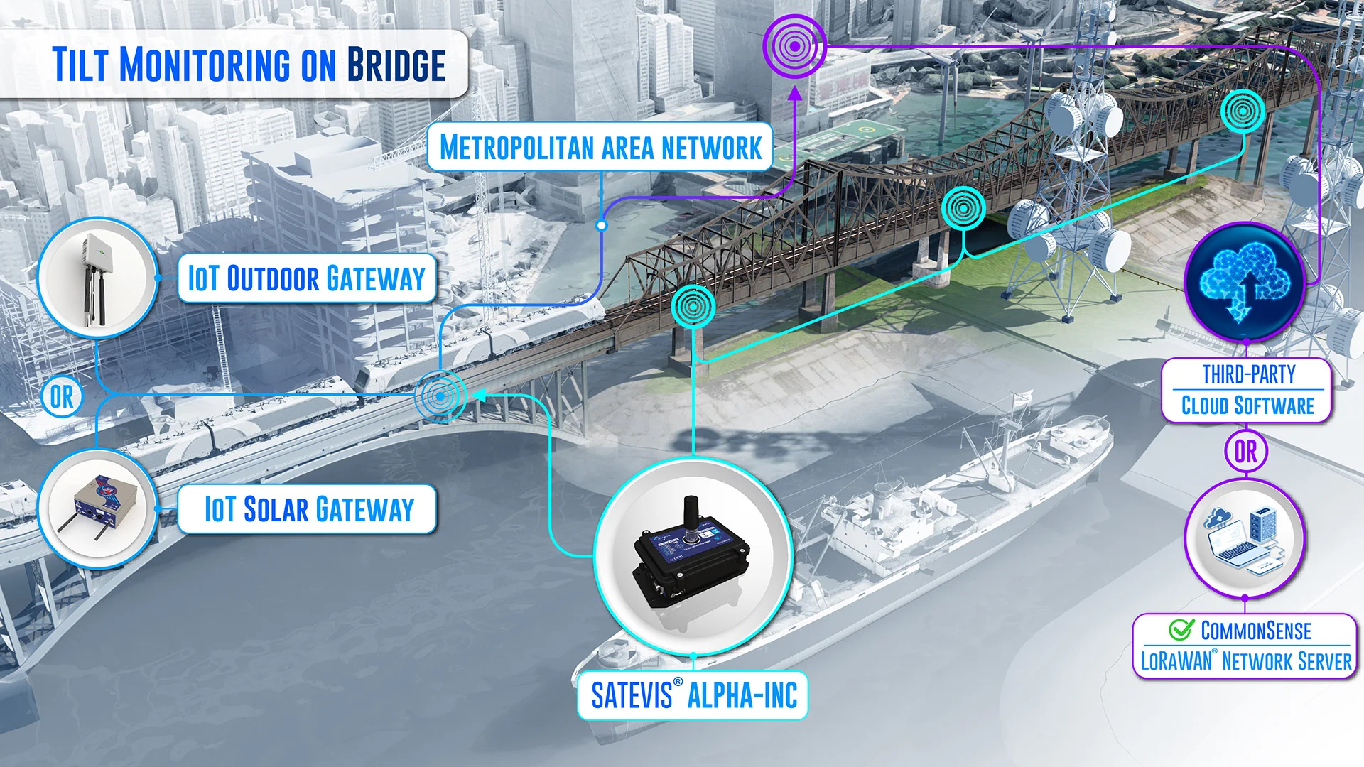 Satevis® Alpha Inc 10T is a wireless Tri-axis inclinometer sensor (scalable range ±10° / ±85°) that integrates the open-standard LoRaWAN® protocol, making it ideal for Structural Health Monitoring (SHM), geotechnical applications, land surveying, and smart infrastructure projects. Designed for scalability and future-proofing, this evolutive device supports sensor fusion (Easy-Sense function), allowing seamless integration with external environmental sensors for expanded functionality. The Satevis® Alpha Inc 10T offers easy integration with third-party cloud platforms (TTN, Chirpstack, Datacake…) or CommonSense®, our proprietary cloud software, ensuring flexible deployment and real-time data insights. With its robust performance and adaptability, the Satevis® Alpha Inc 10T is the smart choice for precision monitoring in critical infrastructure applications. | ||